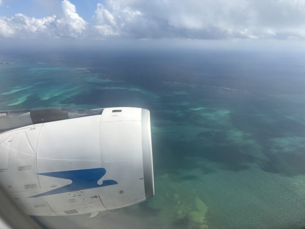 飛行機は、カリブ海を見下ろしながらゆっくり高度を上げていく。