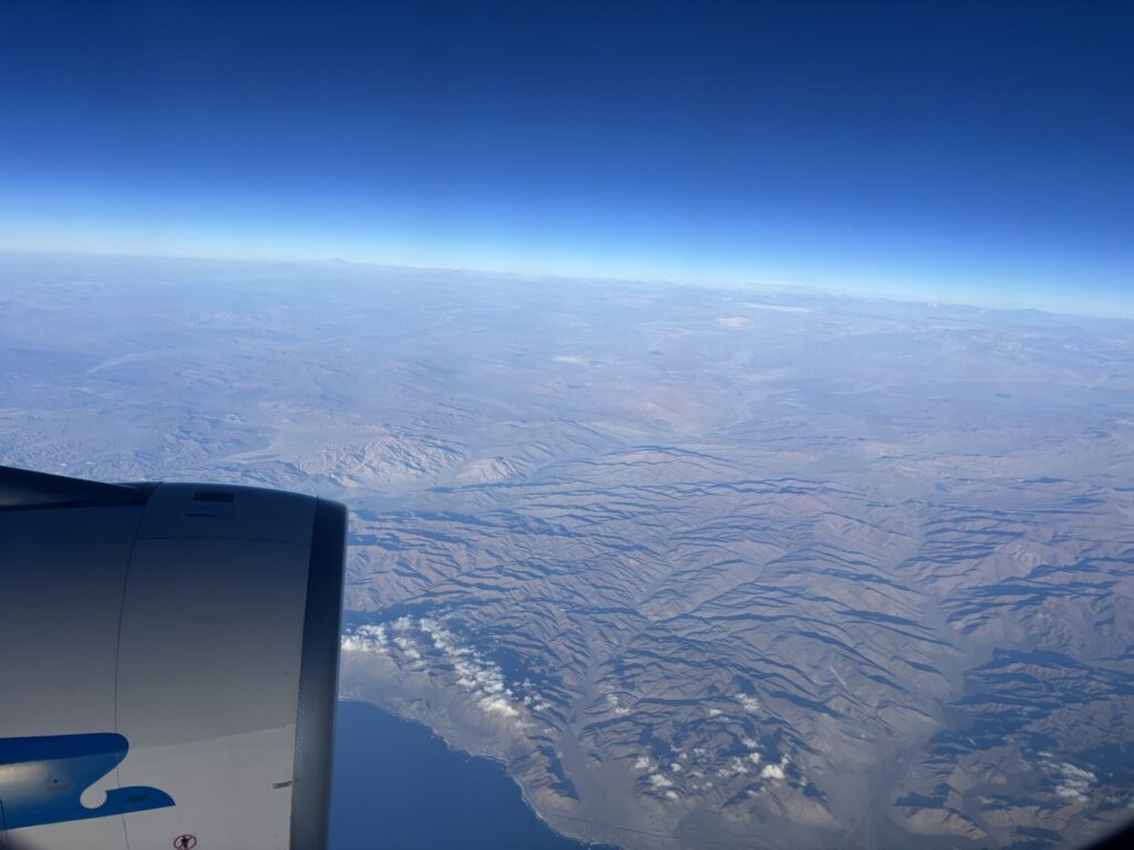 飛行機はアタカマ砂漠の上空を通過。