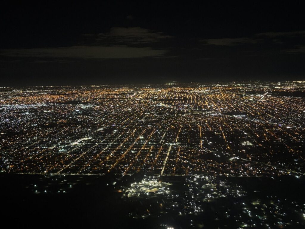 ブエノスアイレスの夜景を眺めながら、エセイサ国際空港へ到着。