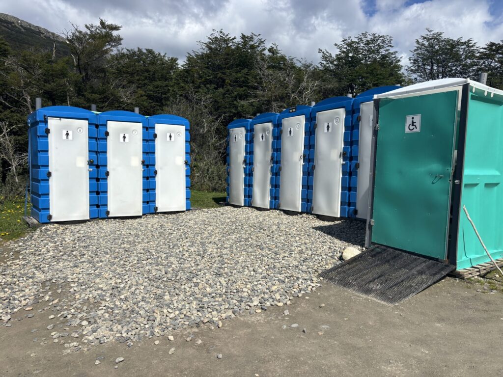 シャトルバンを降りた駐車場には仮設トイレがあるため、ここでトイレを済ませてから本格的にハイキングをスタートした。