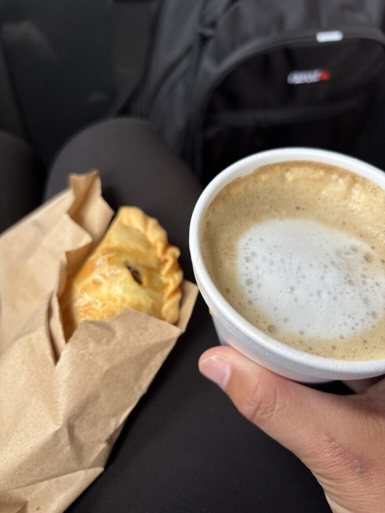 ラテには蓋がなく、揺れる車内で飲むのはなかなか大変だった。