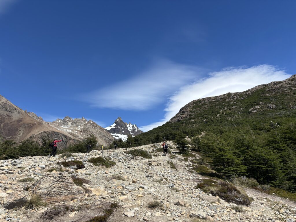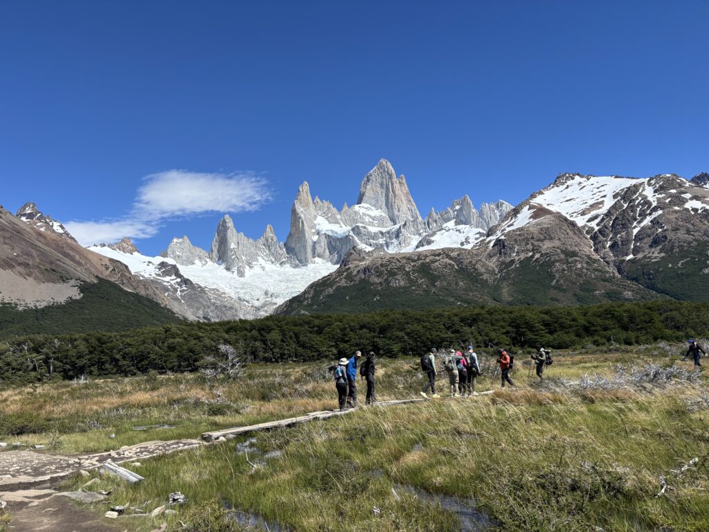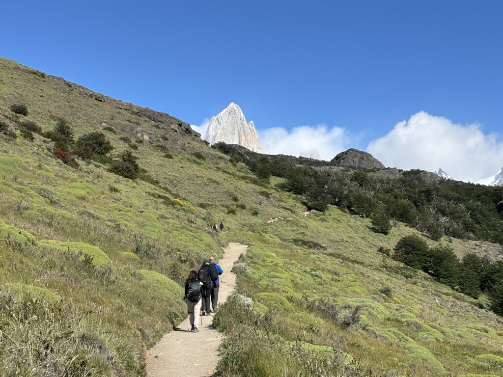 この日は雲も少なく、堂々と姿を現したフィッツロイを背景に、まさにご褒美のような記念写真を撮ることができた。