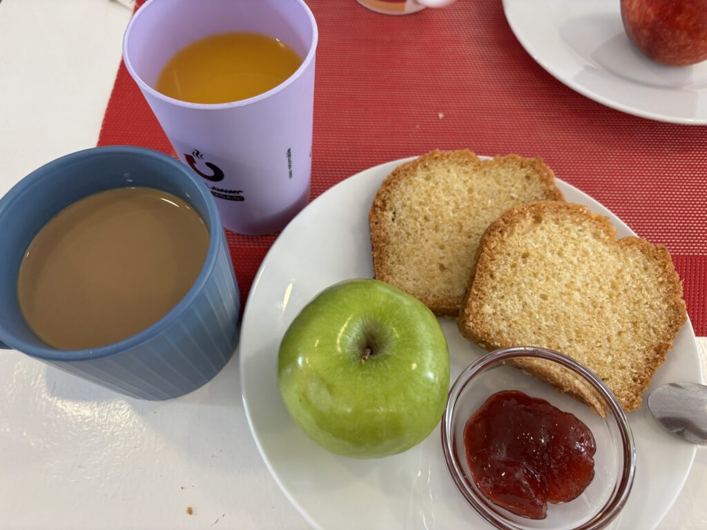 フルーツとパン、ジュースといった簡単な内容だったけれど、用意されているだけでありがたい。