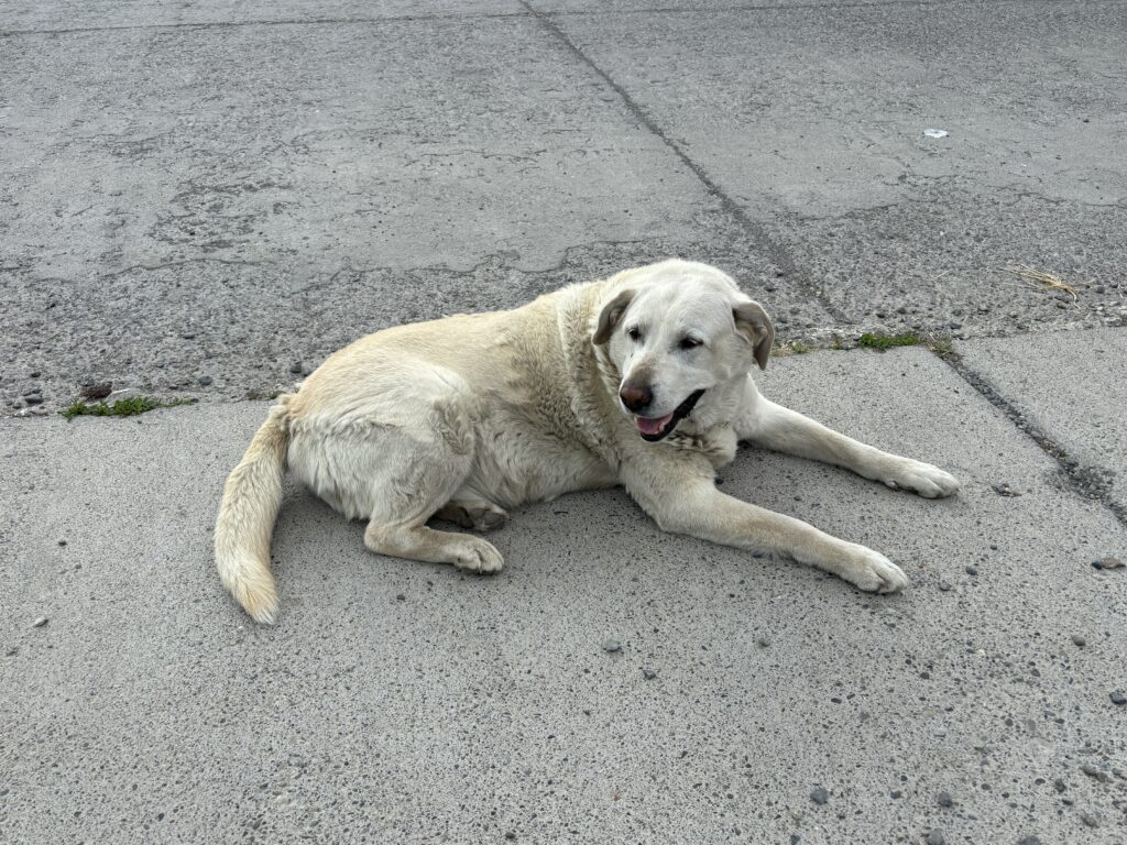 あまり量をあげると、他の野良犬と喧嘩になってしまうらしいので、一口だけにしたのだけど、かえって期待を持たせてしまったかもしれないと少し反省。