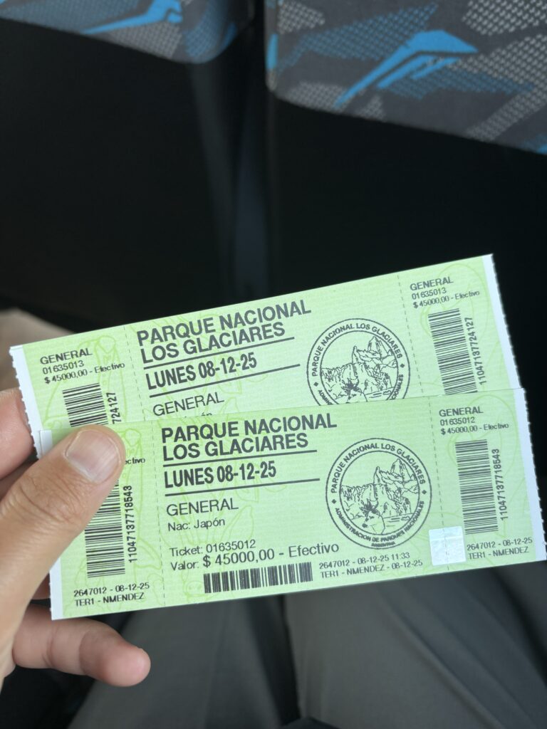 ロス・グラシアレス国立公園入場料は、2人分で90,000アルゼンチンペソ(=10,170円)。
