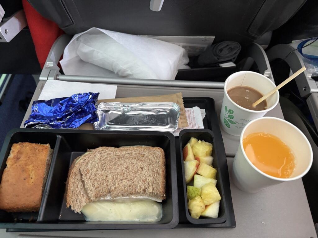 チーズサンドイッチにフルーツなど、軽めの朝食メニューだった。