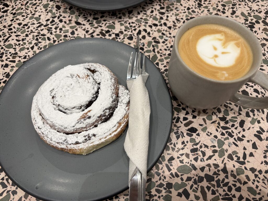 ラテには狐の顔のラテアートが描かれていて、とてもかわいかった。