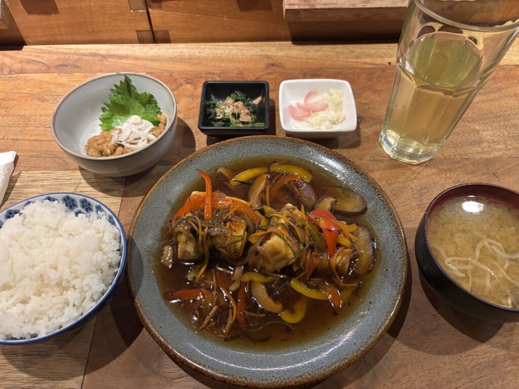 この日は豆腐の甘酢餡かけセットを注文し、納豆も追加。