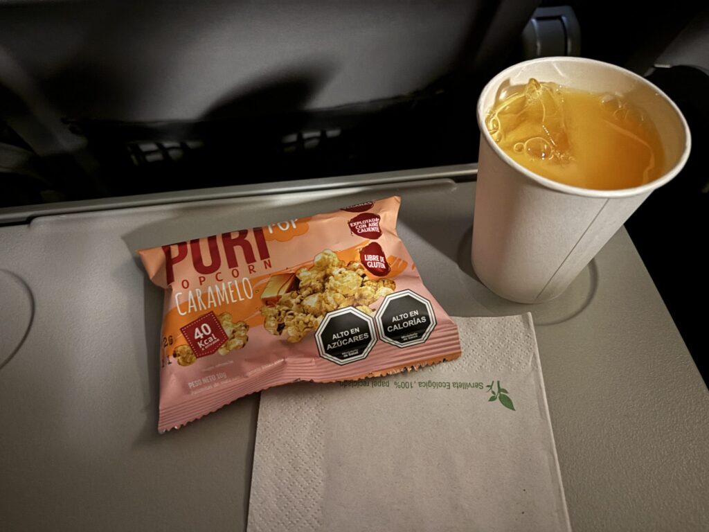 機内では、スナックとジュースが配られ、静かな客室の中で、なんとなく夜行便らしい時間が流れていく。
