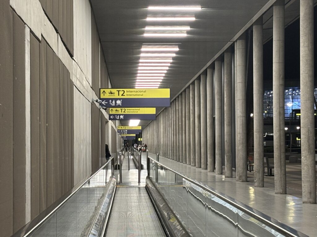 国内線はターミナル1に到着するため、国際線が発着するターミナル2へは、屋根付きの連絡通路を通って移動する。