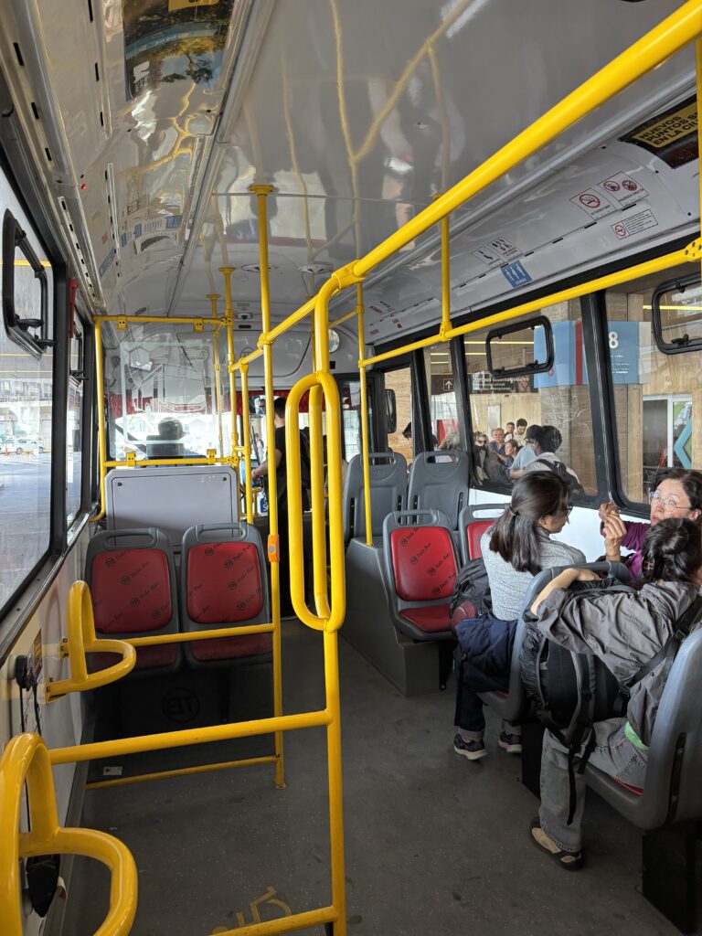 私はたまたま列の前方に並んでいたため座れたけれど、大きな荷物を持っている人にとっては、路線バスでの移動は少し大変そうだ。