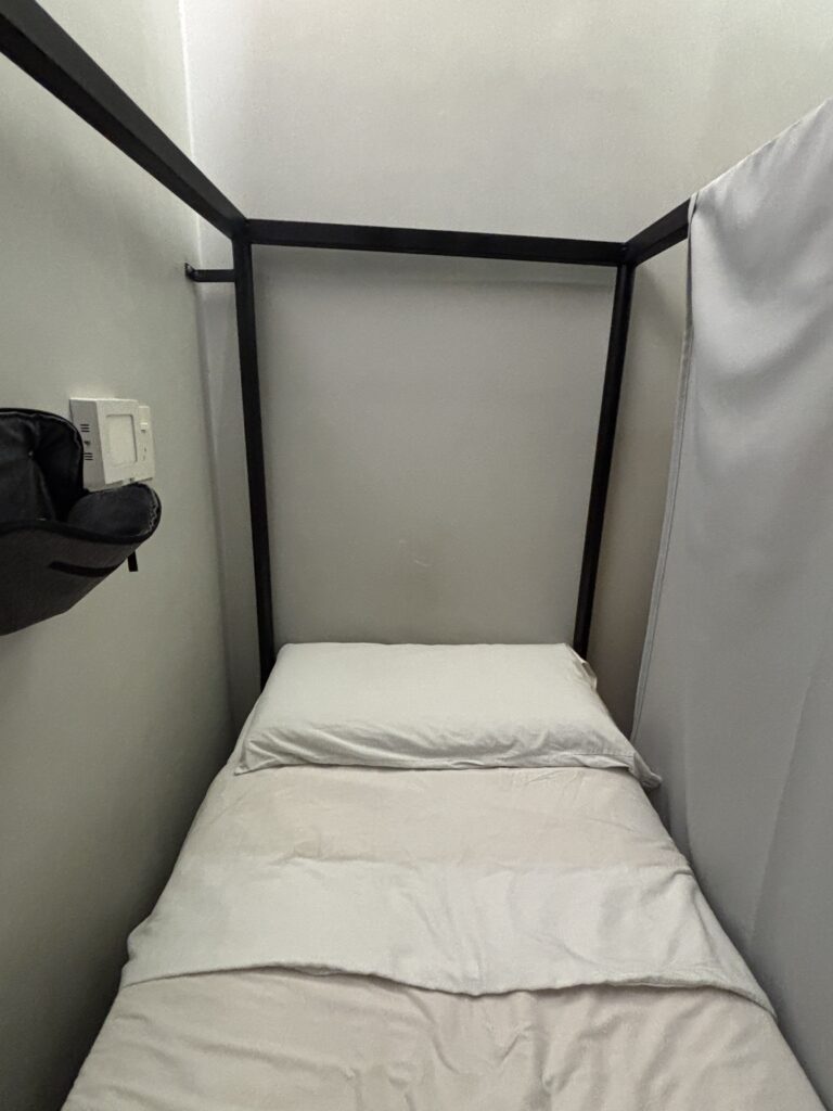 細身の女性なら、この体勢でもギリギリ寝られるけれど、男性が横になって寝るのはかなり厳しそうで、床で寝るしかないように見えた。