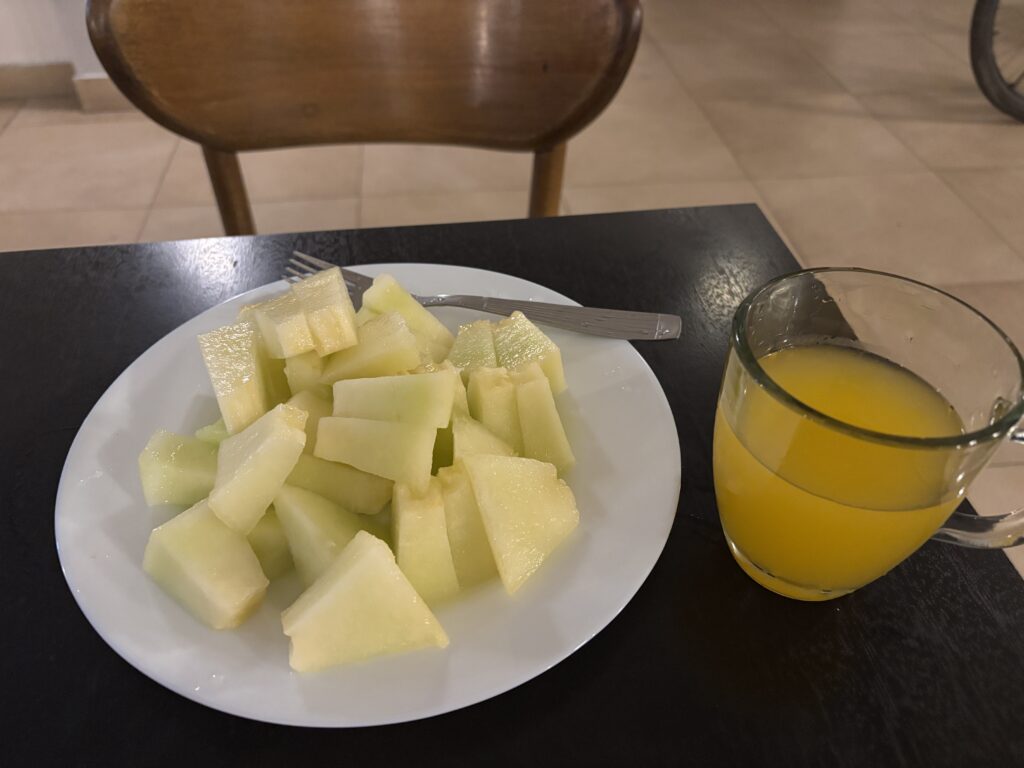 キッチンの状態を見て、本格的に自炊する気にはなれず、この日は出来合いのサラダと、切ったメロンで簡単な夕食にした。