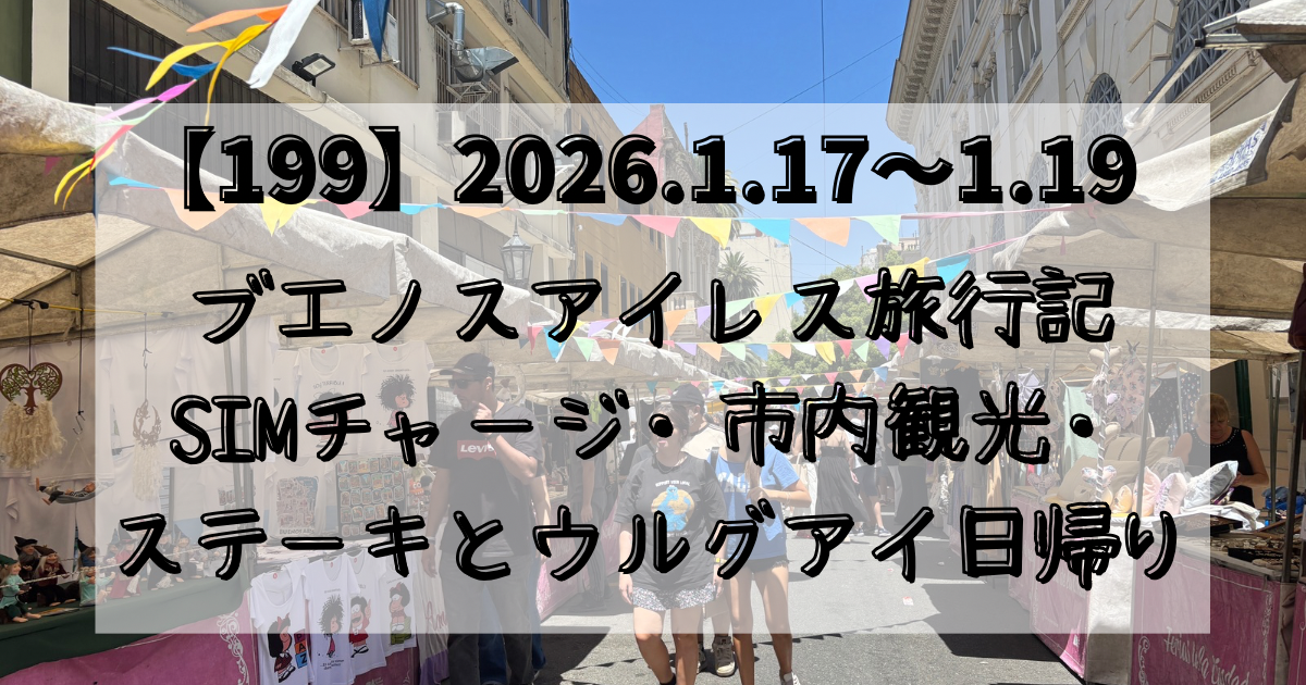 【199】ブエノスアイレス旅行記|SIMチャージ・市内観光・ステーキとウルグアイ日帰り(2026.1.17〜2026.1.19)