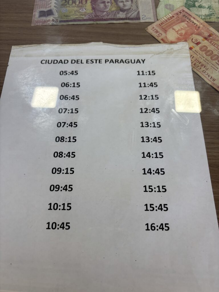 料金は2万〜3万グアラニほどで、バスによって異なる。