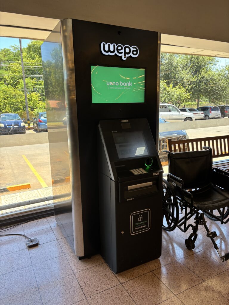 手持ちのパラグアイ通貨がないため、まずはATMでキャッシングすることにした。