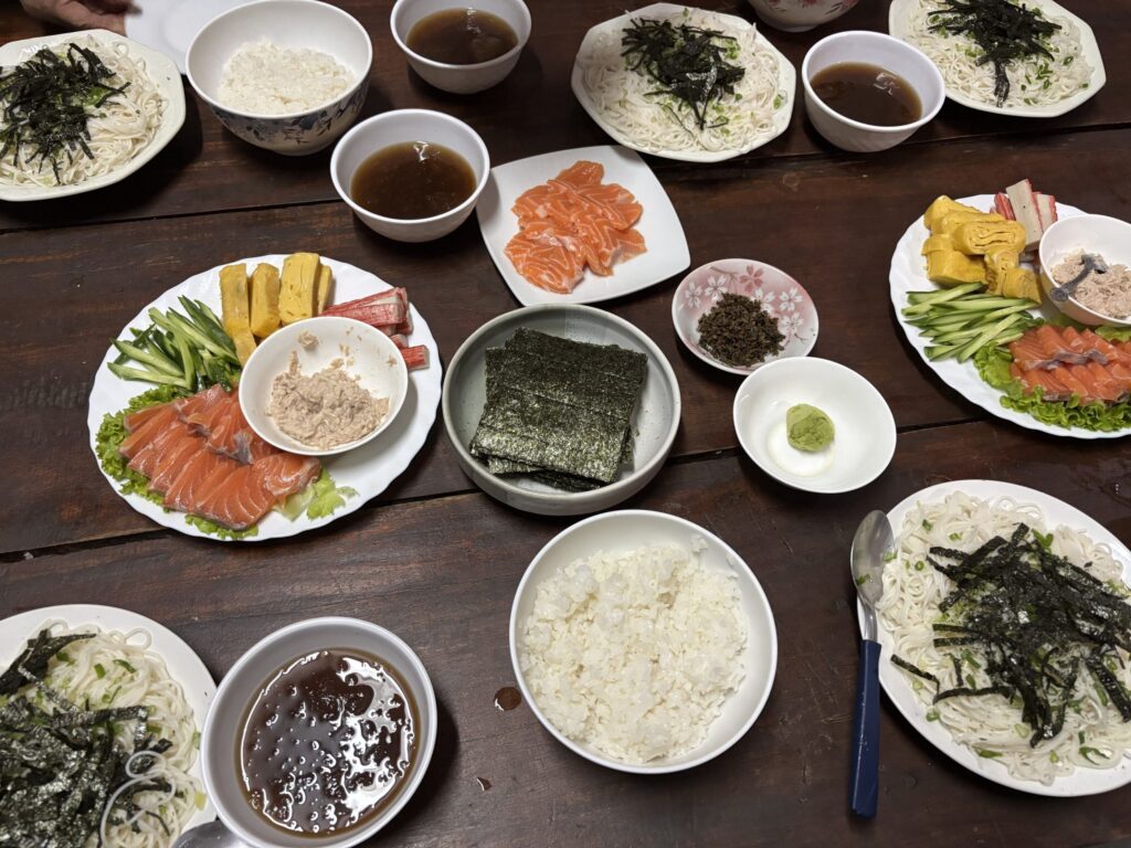 宿泊客が多い日ということで、奥さんやご家族の方が用意してくださった。