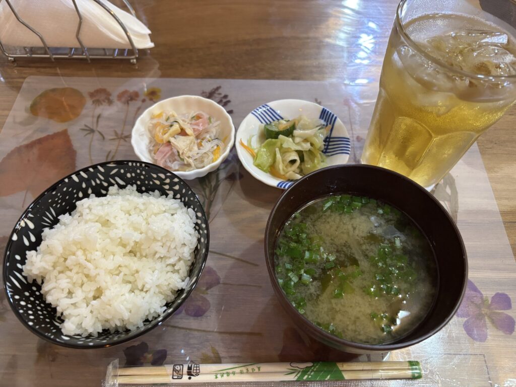 暑さで食欲がなく、定食セットと冷たいお茶を注文。