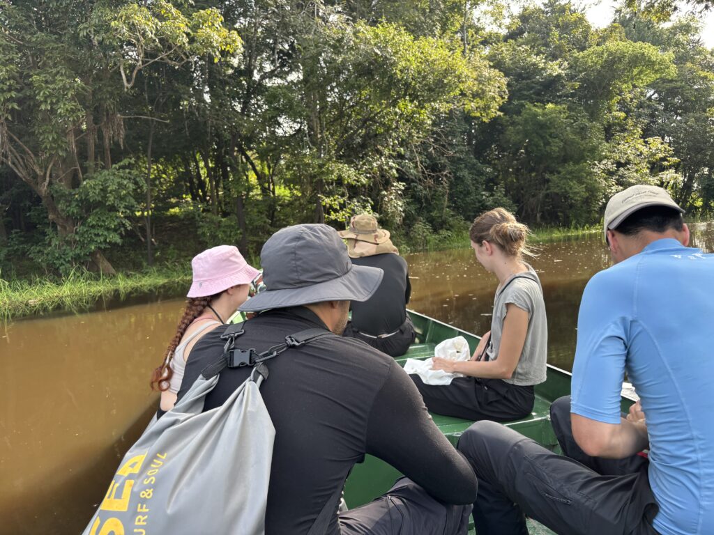 最終日は先住民の村を訪れ、キャッサバ加工やカメの保全活動の話を聞きながら、雨季のアマゾンを体感。