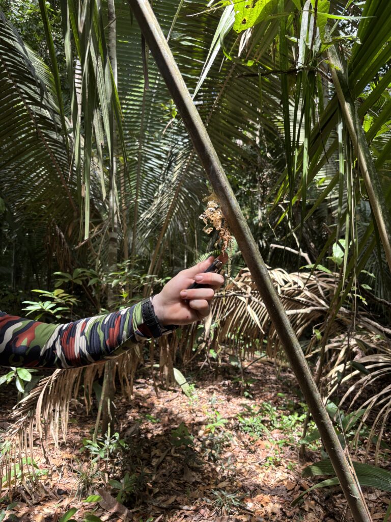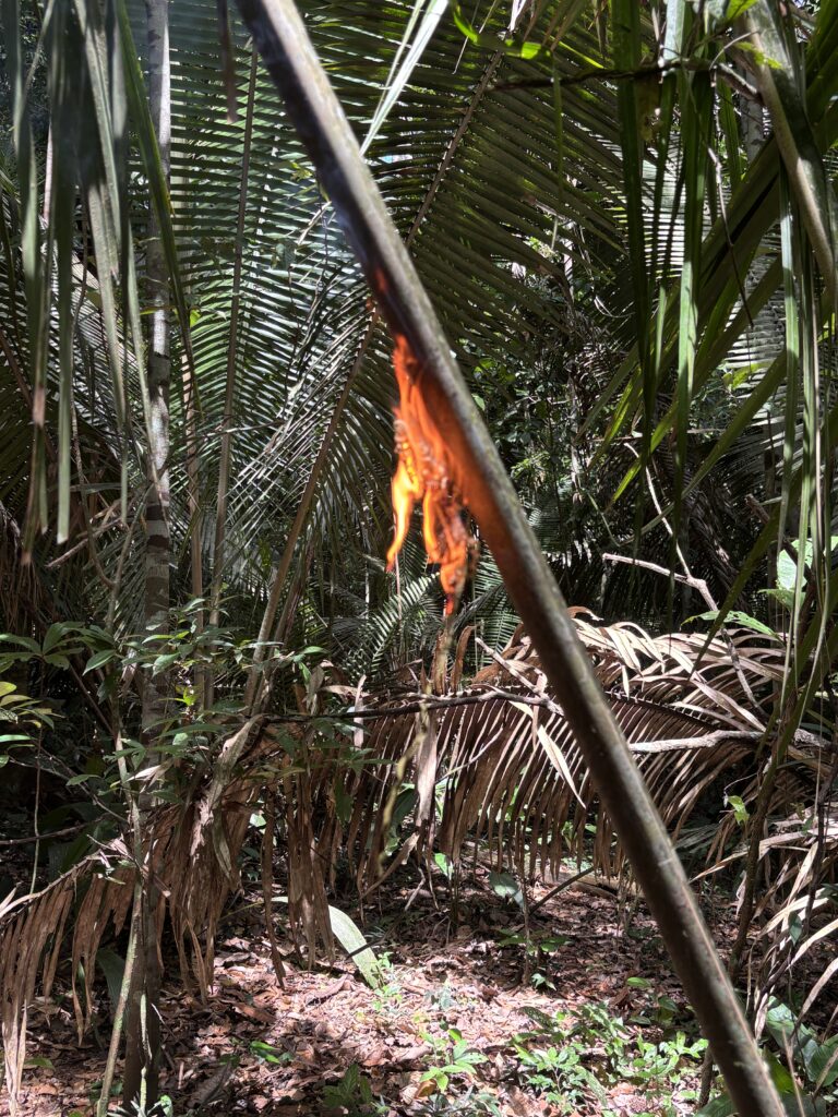 博識ガイドと歩くジャングルウォークでは、苔にたまる水の使い方や火起こしに使えるヤシの繊維、ジャガー対策の知恵など、森で生き抜くためのサバイバル術に触れ、自然の奥深さをあらためて知ることになった。