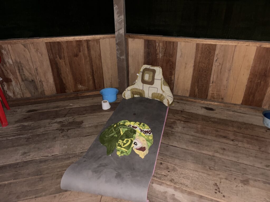 自分も薄いマットの上で寝ているだけなので、体は痛い。