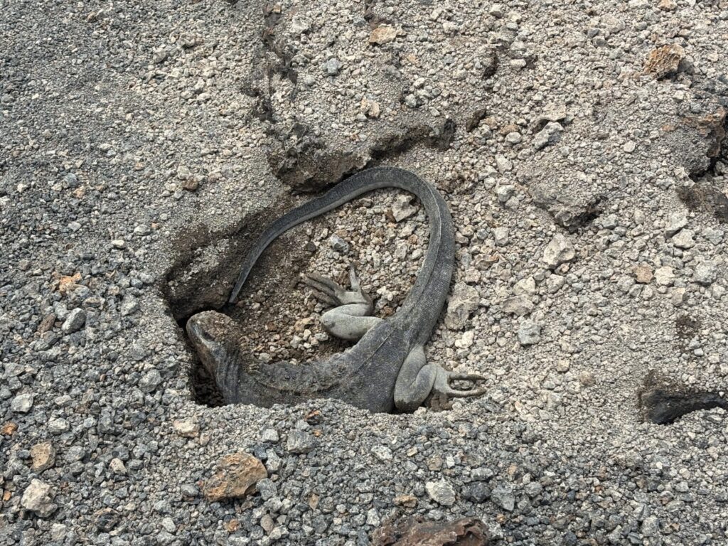 一見ただの穴に見えるけれど、よく見ると中にイグアナが入り込んでいる。