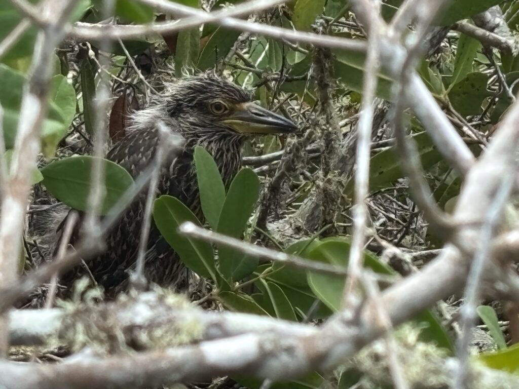 そこに、まだ羽が整いきっていないキイロアシゴイの幼鳥の姿があった。