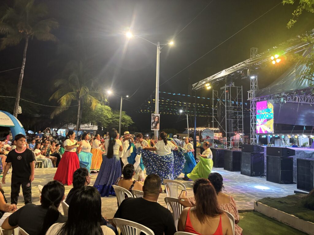 ステージの前では、カラフルなロングスカートを広げながら、女性たちが音楽に合わせて踊っている。
