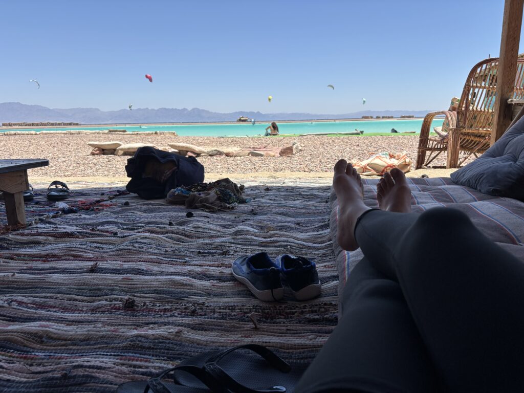 周囲にはベドウィンの小屋が並び、観光地というより、ただ海を眺めて過ごす場所のようだった。