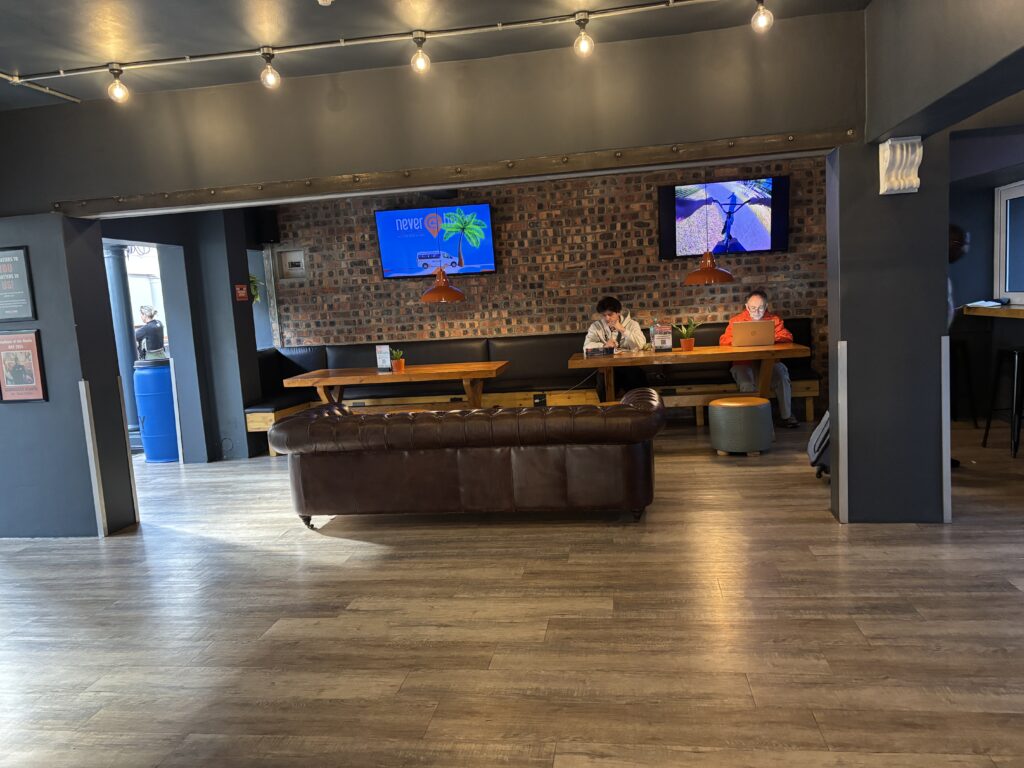 ロビーにはソファが並び、PCで作業する宿泊客の姿もちらほら。