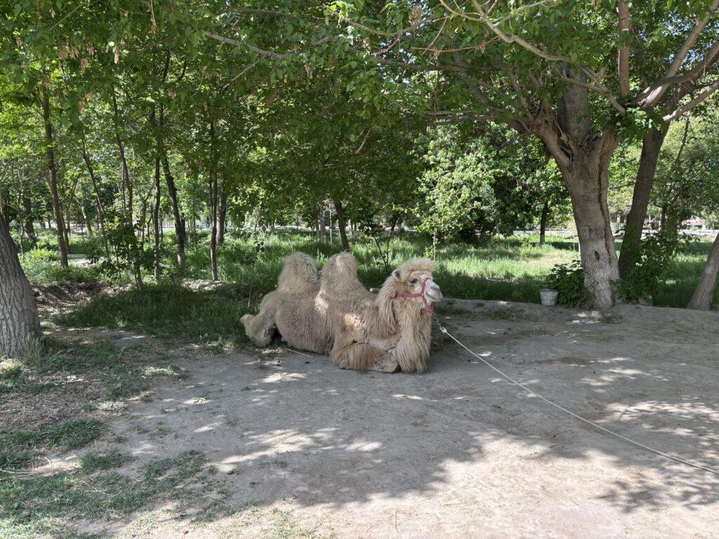 そのまま公園を歩き、ふと見ると木陰で休むラクダの姿が。