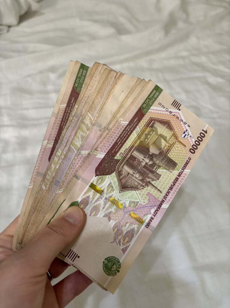 180$分のスムはなんと2,335,000スム…ATMから出てきた札束の厚みに一瞬笑ってしまう。