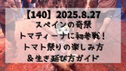 スペイン(イギリス) 【140】スペインの奇祭トマティーナに初参戦!トマト祭りの楽しみ方&生き延び方ガイド(2025.8.27) スペイン・バレンシア郊外ブニョールで開催される奇祭「トマト祭り(ラ・トマティーナ)」に初参加。全身トマトまみれのカオス体験から準備のコツ、持ち物、帰り道の様子まで徹底レポート! 2025.09.12 スペイン(イギリス)ヨーロッパ